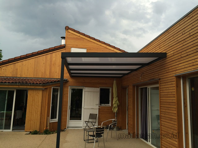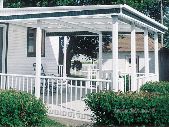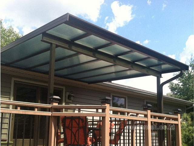Kanopi teras rumah minimalis – Terdapat dua pengertian kanopi, menurut Kamus Besar Bahasa Indonesia kanopi memiliki makna tirai atau langit-langit dari terpal, kain, logam dan lain sebagainya. Dalam dunia biologi, kanopi memiliki hubungan erat dengan ekologi hutan, kanopi pohon merupakan bentuk dari percabangan ranting dan dahan pohon yang memayungi daratan yang berada di bawahnya.