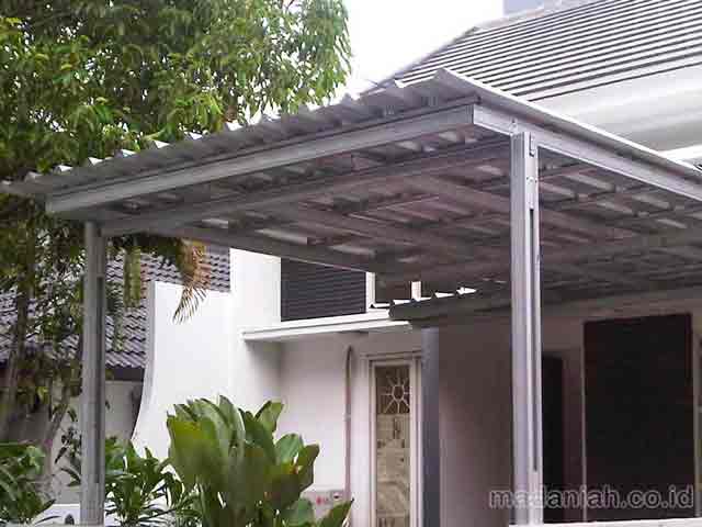 Bengkel las MADANIAH penyedia kanopi besi atap spandek dengan kualitas bahan terbaik dengan harga yang terjangkau. Kami menyediakan jasa pembuatan dan pemasangan kanopi rumah, atap baja ringan, pagar besi, pintu besi, pintu garasi, pintu gerbang, railing tangga, railing balkon, tangga besi, teralis jendela dengan berbagai model, baik minimalis, klasik maupun modern, dari berbagai macam bahan seperti besi tempa, besi stainless steel, besi nako dan masih banyak lagi. Warna cat, ukuran, model, dan karakter dapat di pesan sesuai selera dan keinginan pelanggan (make to order by appointment). Menyediakan produk aksesoris rumah, kantor, apartemen, atau fasilitas umum lainnya dengan bahan-bahan pilihan. Kami juga melayani service / perbaikan / perawatan.