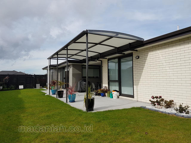 Salah satu jenis kanopi rumah minimalis modern yang saat ini banyak diminati adalah kanopi dari baja ringan. Kanopi baja ringan memiliki beberapa keunggulan yang layak untuk di perhitungkan dari pada jenis kanopi lain. Seperti harganya yang relatif lebih murah dan daya tahannya yang kuat dan juga awet.