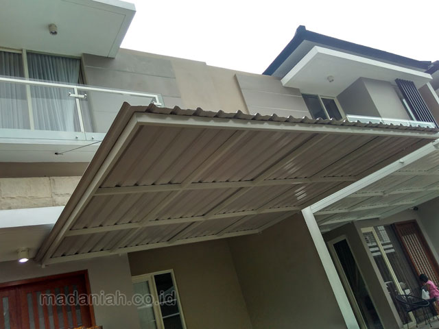 Bengkel las MADANIAH penyedia kanopi rumah minimalis modern dengan kualitas bahan terbaik dengan harga yang terjangkau. Kami menyediakan jasa pembuatan dan pemasangan kanopi rumah, atap baja ringan, pagar besi, pintu besi, pintu garasi, pintu gerbang, railing tangga, railing balkon, tangga besi, teralis jendela dengan berbagai model, baik minimalis, klasik maupun modern, dari berbagai macam bahan seperti besi tempa, besi stainless steel, besi nako dan masih banyak lagi. Warna cat, ukuran, model, dan karakter dapat di pesan sesuai selera dan keinginan pelanggan (make to order by appointment). Menyediakan produk aksesoris rumah, kantor, apartemen, atau fasilitas umum lainnya dengan bahan-bahan pilihan. Kami juga melayani service / perbaikan / perawatan.