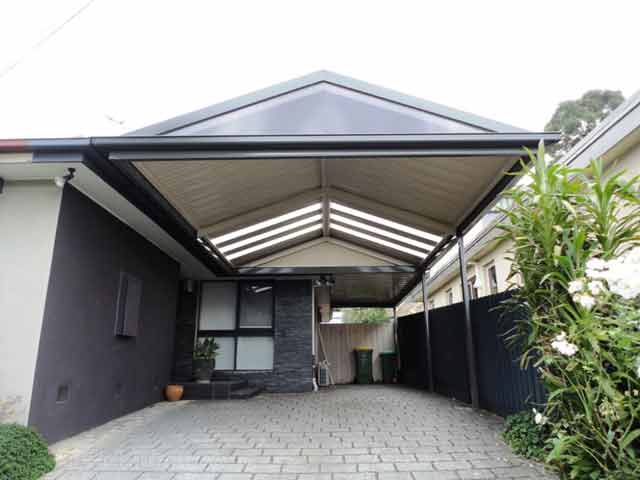 Anda dapat mencoba pola garis-garis geometri yang mendominasi desain carport. Untuk menghasilkan struktur bangunan carport yang lebih kokoh, carport dibangun dengan memasang empat tiang penyangga yang terbuat dari Baja WF, yang berpijak pada tiang cor beton sebagai fondasi setapak.