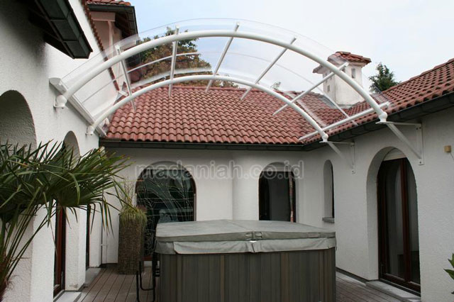 Harga kanopi minimalis modern di Bantul – Kanopi merupakan salah satu elemen pelengkap pada sebuah rumah, dan lagi jika rumah tidak di lengkapi dengan ruangan garasi. kanopi biasanya di letakkan di bagian terdepan rumah, biasanya difungsikan untuk melindungi sesuau yang berada dibawahnya dari sinar matahari dan juga hujan, seperti kendaraan ataupun perabotan. Letaknya yang berada di depan dan langsung terlihat, maka sudah semestinya bila desain kanopi merupakan hal yang penting dan perlu diperhatikan. Bentuk dan juga perpaduan warna harus ditata dan di sesuaikan dengan rumah supaya rumah terlihat rapi dan indah.