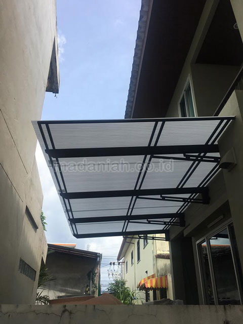 Bengkel las MADANIAH penyedia kanopi minimalis modern dengan kualitas bahan terbaik dengan harga yang terjangkau. Kami menyediakan jasa pembuatan dan pemasangan kanopi rumah, atap baja ringan, pagar besi, pintu besi, pintu garasi, pintu gerbang, railing tangga, railing balkon, tangga besi, teralis jendela dengan berbagai model, baik minimalis, klasik maupun modern, dari berbagai macam bahan seperti besi tempa, besi stainless steel, besi nako dan masih banyak lagi. Warna cat, ukuran, model, dan karakter dapat di pesan sesuai selera dan keinginan pelanggan (make to order by appointment). Menyediakan produk aksesoris rumah, kantor, apartemen, atau fasilitas umum lainnya dengan bahan-bahan pilihan. Kami juga melayani service / perbaikan / perawatan.