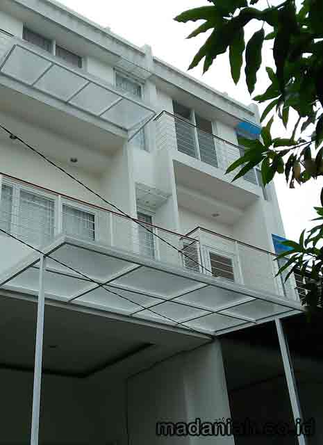 Bengkel las MADANIAH penyedia kanopi polycarbonate solarlite dengan kualitas bahan terbaik dengan harga yang terjangkau. Kami menyediakan jasa pembuatan dan pemasangan kanopi rumah, atap baja ringan, pagar besi, pintu besi, pintu garasi, pintu gerbang, railing tangga, railing balkon, tangga besi, teralis jendela dengan berbagai model, baik minimalis, klasik maupun modern, dari berbagai macam bahan seperti besi tempa, besi stainless steel, besi nako dan masih banyak lagi. Warna cat, ukuran, model, dan karakter dapat di pesan sesuai selera dan keinginan pelanggan (make to order by appointment). Menyediakan produk aksesoris rumah, kantor, apartemen, atau fasilitas umum lainnya dengan bahan-bahan pilihan. Kami juga melayani service / perbaikan / perawatan.