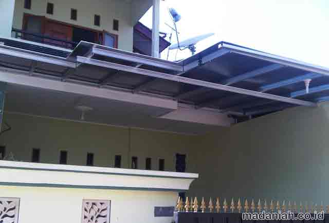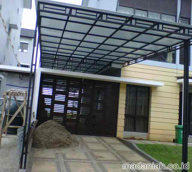 Bengkel las MADANIAH penyedia kanopi polycarbonate solarlite dengan kualitas bahan terbaik dengan harga yang terjangkau. Kami menyediakan jasa pembuatan dan pemasangan kanopi rumah, atap baja ringan, pagar besi, pintu besi, pintu garasi, pintu gerbang, railing tangga, railing balkon, tangga besi, teralis jendela dengan berbagai model, baik minimalis, klasik maupun modern, dari berbagai macam bahan seperti besi tempa, besi stainless steel, besi nako dan masih banyak lagi. Warna cat, ukuran, model, dan karakter dapat di pesan sesuai selera dan keinginan pelanggan (make to order by appointment). Menyediakan produk aksesoris rumah, kantor, apartemen, atau fasilitas umum lainnya dengan bahan-bahan pilihan. Kami juga melayani service / perbaikan / perawatan.