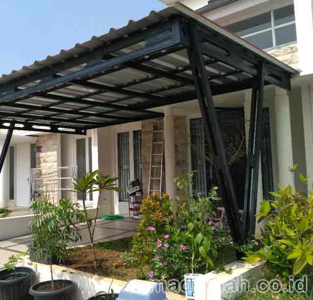 Harga kanopi spandek pasir Wonosari Gunungkidul – Kita tentu sudah tidak asing lagi saat mendengar kata kanopi bukan? Ya, dewasa sini kanopi sedang menjadi bagian konstruksi bangunan yang tidak terpisahkan dari sebagian gaya rumah minimalis yang sedang menjamur. Ada banyak model desain dan juga jenis bahan yang di gunakan, baik bahan kerangka kanopi maupun atapnya. Belakangan ini kanopi dari rangka baja ringan tengah banyak di gandrungi oleh masyarakat. Kanopi dengan rangka baja ringan sangat cocok untuk rumah dengan gaya minimalis dan juga modern. Baja ringan di pilih karena banyak memiliki keunggulan salah satunya adalah sifatnya yang tidak mudah berkarat.