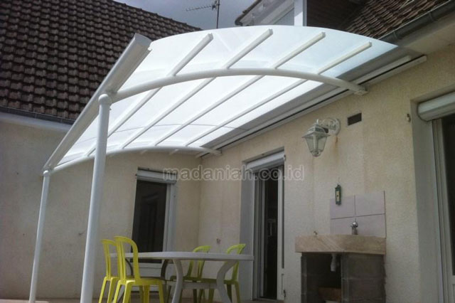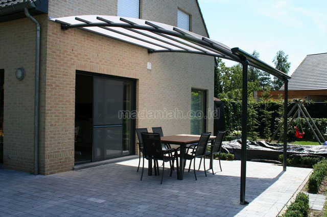 Bengkel las MADANIAH penyedia kanopi teras belakang rumah dengan kualitas bahan terbaik dengan harga yang terjangkau. Kami menyediakan jasa pembuatan dan pemasangan kanopi rumah, atap baja ringan, pagar besi, pintu besi, pintu garasi, pintu gerbang, railing tangga, railing balkon, tangga besi, teralis jendela dengan berbagai model, baik minimalis, klasik maupun modern, dari berbagai macam bahan seperti besi tempa, besi stainless steel, besi nako dan masih banyak lagi. Warna cat, ukuran, model, dan karakter dapat di pesan sesuai selera dan keinginan pelanggan (make to order by appointment). Menyediakan produk aksesoris rumah, kantor, apartemen, atau fasilitas umum lainnya dengan bahan-bahan pilihan. Kami juga melayani service / perbaikan / perawatan.