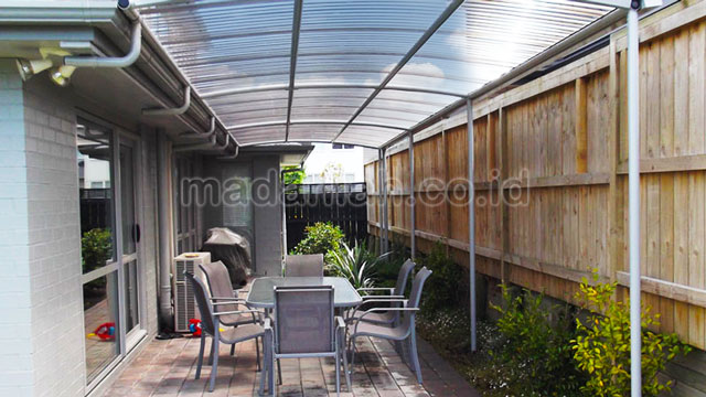 Harga kanopi teras belakang rumah di kota Yogyakarta – Jika kita memiliki sisa lahan di bagian belakang rumah, kita dapat memanfaatkanya untuk membuat teras serta taman mini. Tanaman yang di letakkan di teras belakang rumah biasanya hanya satu atau lebih pohon kecil baik dalam pot maupun di tanam di tanah serta di alasi dengan rerumputan. Kita juga dapat mengaplikasikan air mancur sebagai pelengkap agar suasana teras menjadi lebih asri dan damai dengan adanya suara gemericik airnya.
