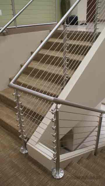 Dari semua bahan railing, logam stainless steel memiliki karakter lebih bagus, kuat, unik dan juga memunculkan kesan elegan. Disamping mampu menahan korosi, stainless steel juga terlihat mewah. Railing yang menggunakan bahan dari stainless ini biasanya memiliki desain minimalis. Untuk masalah harga railing tangga stainless steel minimalis memang terbilang cukup mahal, tetapi sebanding dengan perawatannya yang cukup mudah sehingga dapat menekan pengeluaran untuk jangka panjang.