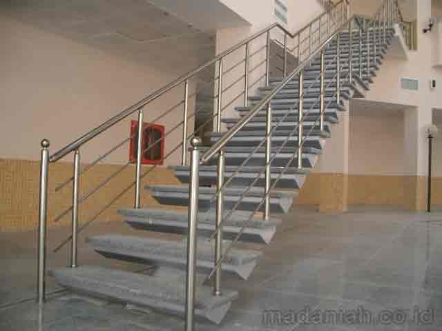 Bengkel las MADANIAH penyedia railing tangga stainless steel minimalis dengan kualitas bahan terbaik dengan harga yang terjangkau. Kami menyediakan jasa pembuatan dan pemasangan kanopi rumah, atap baja ringan, pagar besi, pintu besi, pintu garasi, pintu gerbang, railing tangga, railing balkon, tangga besi, teralis jendela dengan berbagai model, baik minimalis, klasik maupun modern, dari berbagai macam bahan seperti besi tempa, besi stainless steel, besi nako dan masih banyak lagi. Warna cat, ukuran, model, dan karakter dapat di pesan sesuai selera dan keinginan pelanggan (make to order by appointment). Menyediakan produk aksesoris rumah, kantor, apartemen, atau fasilitas umum lainnya dengan bahan-bahan pilihan. Kami juga melayani service / perbaikan / perawatan.