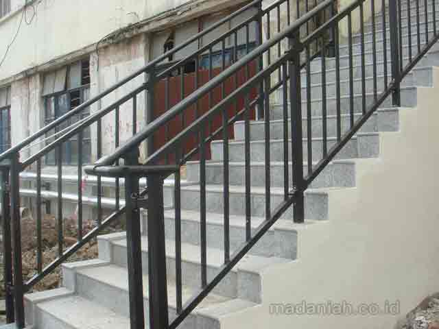 Bengkel las MADANIAH penyedia railing tangga stainless steel minimalis dengan kualitas bahan terbaik dengan harga yang terjangkau. Kami menyediakan jasa pembuatan dan pemasangan kanopi rumah, atap baja ringan, pagar besi, pintu besi, pintu garasi, pintu gerbang, railing tangga, railing balkon, tangga besi, teralis jendela dengan berbagai model, baik minimalis, klasik maupun modern, dari berbagai macam bahan seperti besi tempa, besi stainless steel, besi nako dan masih banyak lagi. Warna cat, ukuran, model, dan karakter dapat di pesan sesuai selera dan keinginan pelanggan (make to order by appointment). Menyediakan produk aksesoris rumah, kantor, apartemen, atau fasilitas umum lainnya dengan bahan-bahan pilihan. Kami juga melayani service / perbaikan / perawatan.