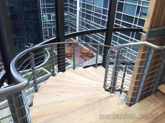 Harga pasang railing tangga stainless steel minimalis Magelang – Untuk sebagian orang yang memiliki hunian bertingkat mungkin akan dibingungkan dengan pemilihan desain tangga, balkon maupun void. Belum lagi memilih desain dan bahan railing yang cocok dan pas untuk diaplikasikan dan disesuaikan dengan konsep hunian kita.Untuk pembuatan railing tangga ada banyak bahan yang dapat digunakan, seperti bahan logam, kayu, kaca dan juga beton. namun semuanya juga harus disesuaikan dengan bentuk ruangan yang akan kita gunakan untuk meletakkan tangga.
