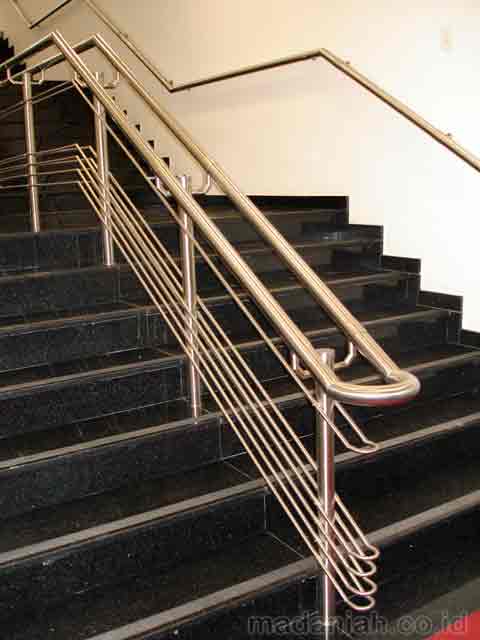 Bengkel las MADANIAH penyedia railing tangga stainless steel minimalis dengan kualitas bahan terbaik dengan harga yang terjangkau. Kami menyediakan jasa pembuatan dan pemasangan kanopi rumah, atap baja ringan, pagar besi, pintu besi, pintu garasi, pintu gerbang, railing tangga, railing balkon, tangga besi, teralis jendela dengan berbagai model, baik minimalis, klasik maupun modern, dari berbagai macam bahan seperti besi tempa, besi stainless steel, besi nako dan masih banyak lagi. Warna cat, ukuran, model, dan karakter dapat di pesan sesuai selera dan keinginan pelanggan (make to order by appointment). Menyediakan produk aksesoris rumah, kantor, apartemen, atau fasilitas umum lainnya dengan bahan-bahan pilihan. Kami juga melayani service / perbaikan / perawatan.