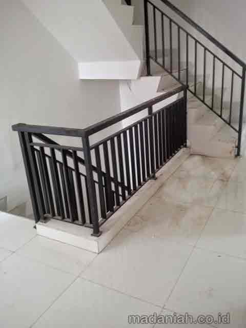 Bengkel las MADANIAH penyedia railing tangga besi hollow galvanis dengan kualitas bahan terbaik dengan harga yang terjangkau. Kami menyediakan jasa pembuatan dan pemasangan kanopi rumah, atap baja ringan, pagar besi, pintu besi, pintu garasi, pintu gerbang, railing tangga, railing balkon, tangga besi, teralis jendela dengan berbagai model, baik minimalis, klasik maupun modern, dari berbagai macam bahan seperti besi tempa, besi stainless steel, besi nako dan masih banyak lagi. Warna cat, ukuran, model, dan karakter dapat di pesan sesuai selera dan keinginan pelanggan (make to order by appointment). Menyediakan produk aksesoris rumah, kantor, apartemen, atau fasilitas umum lainnya dengan bahan-bahan pilihan. Kami juga melayani service / perbaikan / perawatan.