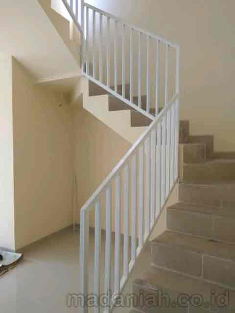 Bengkel las MADANIAH penyedia railing tangga besi hollow galvanis dengan kualitas bahan terbaik dengan harga yang terjangkau. Kami menyediakan jasa pembuatan dan pemasangan kanopi rumah, atap baja ringan, pagar besi, pintu besi, pintu garasi, pintu gerbang, railing tangga, railing balkon, tangga besi, teralis jendela dengan berbagai model, baik minimalis, klasik maupun modern, dari berbagai macam bahan seperti besi tempa, besi stainless steel, besi nako dan masih banyak lagi. Warna cat, ukuran, model, dan karakter dapat di pesan sesuai selera dan keinginan pelanggan (make to order by appointment). Menyediakan produk aksesoris rumah, kantor, apartemen, atau fasilitas umum lainnya dengan bahan-bahan pilihan. Kami juga melayani service / perbaikan / perawatan.