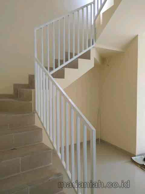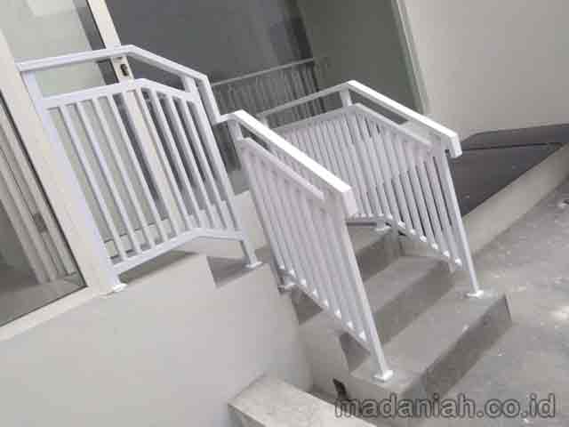 Bengkel las MADANIAH penyedia railing tangga besi hollow galvanis dengan kualitas bahan terbaik dengan harga yang terjangkau. Kami menyediakan jasa pembuatan dan pemasangan kanopi rumah, atap baja ringan, pagar besi, pintu besi, pintu garasi, pintu gerbang, railing tangga, railing balkon, tangga besi, teralis jendela dengan berbagai model, baik minimalis, klasik maupun modern, dari berbagai macam bahan seperti besi tempa, besi stainless steel, besi nako dan masih banyak lagi. Warna cat, ukuran, model, dan karakter dapat di pesan sesuai selera dan keinginan pelanggan (make to order by appointment). Menyediakan produk aksesoris rumah, kantor, apartemen, atau fasilitas umum lainnya dengan bahan-bahan pilihan. Kami juga melayani service / perbaikan / perawatan.
