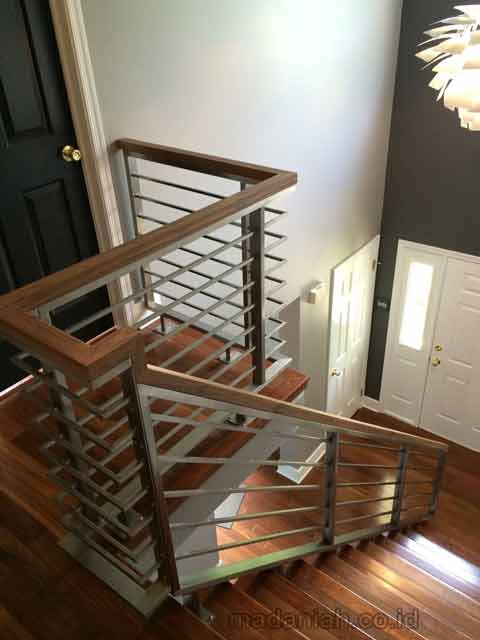 Penyedia Jasa Pembuatan Dan Pemasangan Railing Tangga Besi Pegangan Kayu Berkualitas.