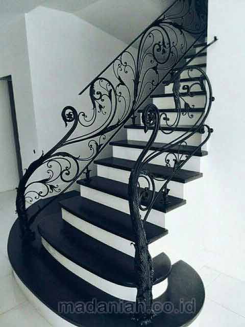 Harga Railing tangga besi tempa minimalis Di Kebumen – Railing tangga memanglah bukan bagian pokok dari sebuah hunian, namun mempuyai fungsi yang cukup penting dalam menciptakan rasa aman dan nyaman. Bentuk desain railing tangga beragam sehingga kita dapat menyesuaikan dengan tema atau konsep hunian, seperti konsep minimalis, klasik maupun modern. Untuk bahan kita dapat menggunakan beton, kayu, batu alam, besi ataupun dengan menggabungkan bahan-bahan tersebut. Bahan besi tempa saat ini banyak diminati, karena kesan elegan dan kuat yang di timbulkan.