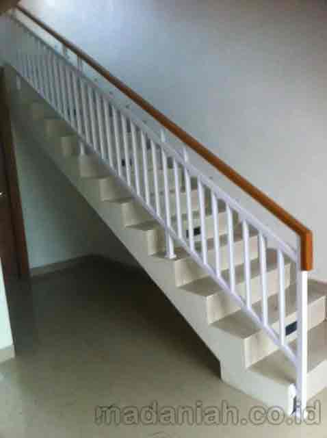 Bengkel las MADANIAH penyedia railing tangga besi hollow galvanis dengan kualitas bahan terbaik dengan harga yang terjangkau. Kami menyediakan jasa pembuatan dan pemasangan kanopi rumah, atap baja ringan, pagar besi, pintu besi, pintu garasi, pintu gerbang, railing tangga, railing balkon, tangga besi, teralis jendela dengan berbagai model, baik minimalis, klasik maupun modern, dari berbagai macam bahan seperti besi tempa, besi stainless steel, besi nako dan masih banyak lagi. Warna cat, ukuran, model, dan karakter dapat di pesan sesuai selera dan keinginan pelanggan (make to order by appointment). Menyediakan produk aksesoris rumah, kantor, apartemen, atau fasilitas umum lainnya dengan bahan-bahan pilihan. Kami juga melayani service / perbaikan / perawatan.