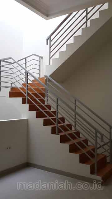 Bengkel las MADANIAH penyedia railing tangga dengan kualitas bahan terbaik dengan harga yang terjangkau. Kami menyediakan jasa pembuatan dan pemasangan kanopi rumah, atap baja ringan, pagar besi, pintu besi, pintu garasi, pintu gerbang, railing tangga, railing balkon, tangga besi, teralis jendela dengan berbagai model, baik minimalis, klasik maupun modern, dari berbagai macam bahan seperti besi tempa, besi stainless steel, besi nako dan masih banyak lagi. Warna cat, ukuran, model, dan karakter dapat di pesan sesuai selera dan keinginan pelanggan (make to order by appointment). Menyediakan produk aksesoris rumah, kantor, apartemen, atau fasilitas umum lainnya dengan bahan-bahan pilihan. Kami juga melayani service / perbaikan / perawatan.