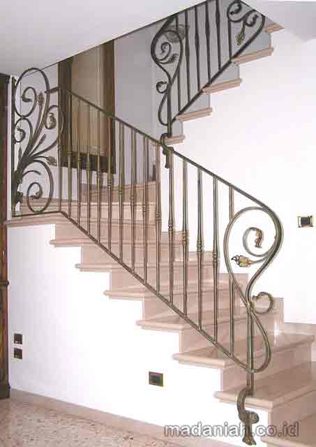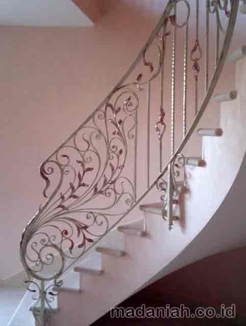 Bengkel las MADANIAH penyedia railing tangga wrought iron dengan kualitas bahan terbaik dengan harga yang terjangkau. Kami menyediakan jasa pembuatan dan pemasangan kanopi rumah, atap baja ringan, pagar besi, pintu besi, pintu garasi, pintu gerbang, railing tangga, railing balkon, tangga besi, teralis jendela dengan berbagai model, baik minimalis, klasik maupun modern, dari berbagai macam bahan seperti besi tempa, besi stainless steel, besi nako dan masih banyak lagi. Warna cat, ukuran, model, dan karakter dapat di pesan sesuai selera dan keinginan pelanggan (make to order by appointment). Menyediakan produk aksesoris rumah, kantor, apartemen, atau fasilitas umum lainnya dengan bahan-bahan pilihan. Kami juga melayani service / perbaikan / perawatan.