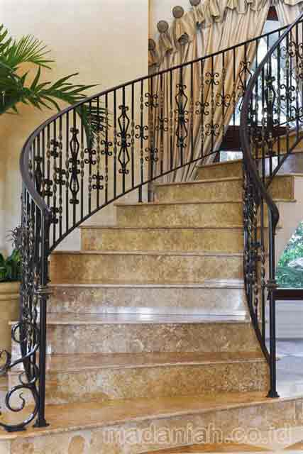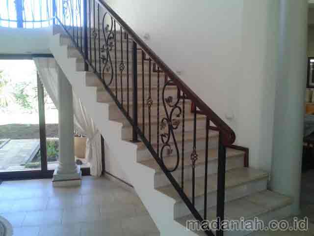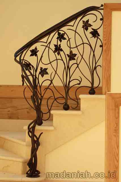 Bengkel las MADANIAH penyedia railing tangga wrought iron dengan kualitas bahan terbaik dengan harga yang terjangkau. Kami menyediakan jasa pembuatan dan pemasangan kanopi rumah, atap baja ringan, pagar besi, pintu besi, pintu garasi, pintu gerbang, railing tangga, railing balkon, tangga besi, teralis jendela dengan berbagai model, baik minimalis, klasik maupun modern, dari berbagai macam bahan seperti besi tempa, besi stainless steel, besi nako dan masih banyak lagi. Warna cat, ukuran, model, dan karakter dapat di pesan sesuai selera dan keinginan pelanggan (make to order by appointment). Menyediakan produk aksesoris rumah, kantor, apartemen, atau fasilitas umum lainnya dengan bahan-bahan pilihan. Kami juga melayani service / perbaikan / perawatan.