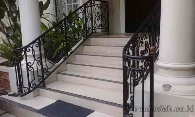 Bengkel las MADANIAH penyedia railing tangga wrought iron dengan kualitas bahan terbaik dengan harga yang terjangkau. Kami menyediakan jasa pembuatan dan pemasangan kanopi rumah, atap baja ringan, pagar besi, pintu besi, pintu garasi, pintu gerbang, railing tangga, railing balkon, tangga besi, teralis jendela dengan berbagai model, baik minimalis, klasik maupun modern, dari berbagai macam bahan seperti besi tempa, besi stainless steel, besi nako dan masih banyak lagi. Warna cat, ukuran, model, dan karakter dapat di pesan sesuai selera dan keinginan pelanggan (make to order by appointment). Menyediakan produk aksesoris rumah, kantor, apartemen, atau fasilitas umum lainnya dengan bahan-bahan pilihan. Kami juga melayani service / perbaikan / perawatan.