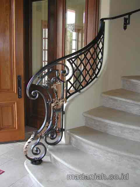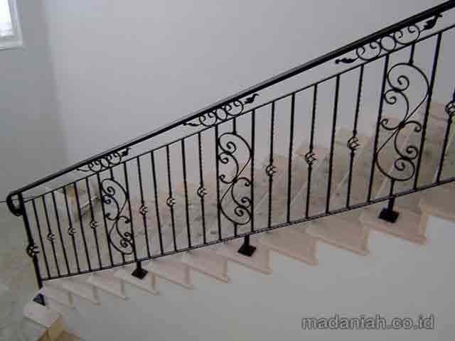 Bengkel las MADANIAH penyedia railing tangga wrought iron dengan kualitas bahan terbaik dengan harga yang terjangkau. Kami menyediakan jasa pembuatan dan pemasangan kanopi rumah, atap baja ringan, pagar besi, pintu besi, pintu garasi, pintu gerbang, railing tangga, railing balkon, tangga besi, teralis jendela dengan berbagai model, baik minimalis, klasik maupun modern, dari berbagai macam bahan seperti besi tempa, besi stainless steel, besi nako dan masih banyak lagi. Warna cat, ukuran, model, dan karakter dapat di pesan sesuai selera dan keinginan pelanggan (make to order by appointment). Menyediakan produk aksesoris rumah, kantor, apartemen, atau fasilitas umum lainnya dengan bahan-bahan pilihan. Kami juga melayani service / perbaikan / perawatan.