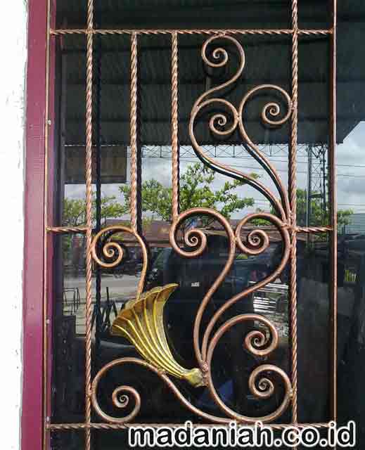 Bengkel las MADANIAH penyedia teralis besi ulir dengan kualitas bahan terbaik dengan harga yang terjangkau. Kami menyediakan jasa pembuatan dan pemasangan kanopi rumah, atap baja ringan, pagar besi, pintu besi, pintu garasi, pintu gerbang, railing tangga, railing balkon, tangga besi, teralis jendela dengan berbagai model, baik minimalis, klasik maupun modern, dari berbagai macam bahan seperti besi tempa, besi stainless steel, besi nako dan masih banyak lagi. Warna cat, ukuran, model, dan karakter dapat di pesan sesuai selera dan keinginan pelanggan (make to order by appointment). Menyediakan produk aksesoris rumah, kantor, apartemen, atau fasilitas umum lainnya dengan bahan-bahan pilihan. Kami juga melayani service / perbaikan / perawatan.