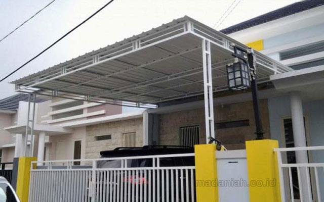 Bengkel las MADANIAH penyedia kanopi dengan kualitas bahan terbaik dengan harga yang terjangkau. Kami menyediakan jasa pembuatan dan pemasangan kanopi rumah, atap baja ringan, pagar besi, pintu besi, pintu garasi, pintu gerbang, railing tangga, railing balkon, tangga besi, teralis jendela dengan berbagai model, baik minimalis, klasik maupun modern, dari berbagai macam bahan seperti besi tempa, besi stainless steel, besi nako dan masih banyak lagi. Warna cat, ukuran, model, dan karakter dapat di pesan sesuai selera dan keinginan pelanggan (make to order by appointment). Menyediakan produk aksesoris rumah, kantor, apartemen, atau fasilitas umum lainnya dengan bahan-bahan pilihan. Kami juga melayani service / perbaikan / perawatan.
