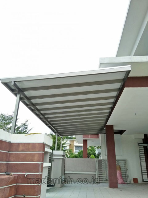 Bengkel las MADANIAH penyedia kanopi baja ringan galvalum dengan kualitas bahan terbaik dengan harga yang terjangkau. Kami menyediakan jasa pembuatan dan pemasangan kanopi rumah, atap baja ringan, pagar besi, pintu besi, pintu garasi, pintu gerbang, railing tangga, railing balkon, tangga besi, teralis jendela dengan berbagai model, baik minimalis, klasik maupun modern, dari berbagai macam bahan seperti besi tempa, besi stainless steel, besi nako dan masih banyak lagi. Warna cat, ukuran, model, dan karakter dapat di pesan sesuai selera dan keinginan pelanggan (make to order by appointment). Menyediakan produk aksesoris rumah, kantor, apartemen, atau fasilitas umum lainnya dengan bahan-bahan pilihan. Kami juga melayani service / perbaikan / perawatan.