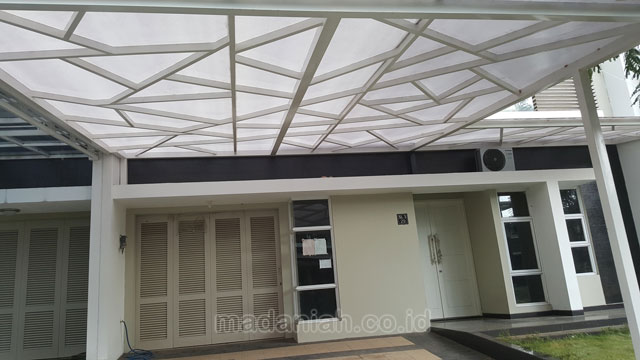 Kanopi baja ringan galvalum di kota Yogyakarta – Dahulu kanopi berfungsi untuk melindungi benda-benda berharga yang berada di bagian depan rumah dari paparan panas sinar matahari maupun terpaan air hujan, seperti kendaraan dan juga furniture. Namun dewasa ini, tidak hanya berfungsi sebagai pelindung, kanopi juga di fungsikan untuk memenuhi kebutuhan estetika memperindah dan mempercantik exterior rumah. Oleh sebab itu, pemilihan kerangka kanopi harus dilakukan dengan teliti dan juga hati-hati. Banyak kerangka kanopi yang biasa kita temui seperti dari bahan kayu, bahan besi dan juga bahan baja ringan galvalum, dimana masing-masing memiliki kelebihan serta kekurangan. Rangka kanopi dari bahan kayu memiliki kelebihan dari segi nilai estetika, namun sifatnya yang mudah lapuk bila sering terkena perubahan cuaca membuat kayu tidak lagi dijadikan pilihan utama. Belakangan ini, model kerangka kanopi baja ringan galvalum mulai menjadi trend, menggeser model kanopi dengan kerangka besi. Model kanopi baja ringan galvalum ini bila dibandingkan dengan model kanopi kayu dan juga besi memiliki beberapa kelebihan yang patut untuk diperhitungkan seperti sifat baja ringan galvalum yang tahan karat dan juga harganya yang relatif murah.