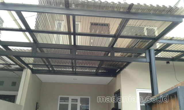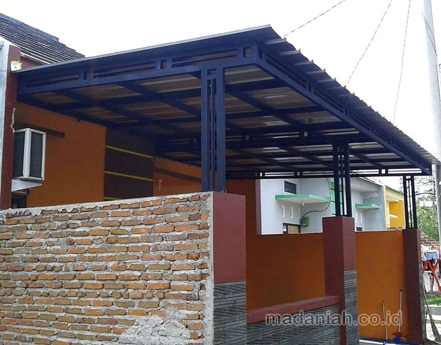 Bengkel las MADANIAH penyedia kanopi baja ringan galvalum dengan kualitas bahan terbaik dengan harga yang terjangkau. Kami menyediakan jasa pembuatan dan pemasangan kanopi rumah, atap baja ringan, pagar besi, pintu besi, pintu garasi, pintu gerbang, railing tangga, railing balkon, tangga besi, teralis jendela dengan berbagai model, baik minimalis, klasik maupun modern, dari berbagai macam bahan seperti besi tempa, besi stainless steel, besi nako dan masih banyak lagi. Warna cat, ukuran, model, dan karakter dapat di pesan sesuai selera dan keinginan pelanggan (make to order by appointment). Menyediakan produk aksesoris rumah, kantor, apartemen, atau fasilitas umum lainnya dengan bahan-bahan pilihan. Kami juga melayani service / perbaikan / perawatan.
