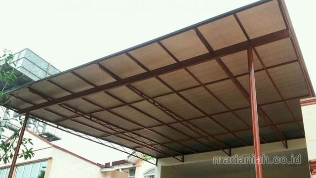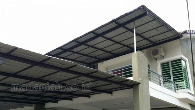 Bengkel las MADANIAH penyedia kanopi baja ringan galvalum dengan kualitas bahan terbaik dengan harga yang terjangkau. Kami menyediakan jasa pembuatan dan pemasangan kanopi rumah, atap baja ringan, pagar besi, pintu besi, pintu garasi, pintu gerbang, railing tangga, railing balkon, tangga besi, teralis jendela dengan berbagai model, baik minimalis, klasik maupun modern, dari berbagai macam bahan seperti besi tempa, besi stainless steel, besi nako dan masih banyak lagi. Warna cat, ukuran, model, dan karakter dapat di pesan sesuai selera dan keinginan pelanggan (make to order by appointment). Menyediakan produk aksesoris rumah, kantor, apartemen, atau fasilitas umum lainnya dengan bahan-bahan pilihan. Kami juga melayani service / perbaikan / perawatan.