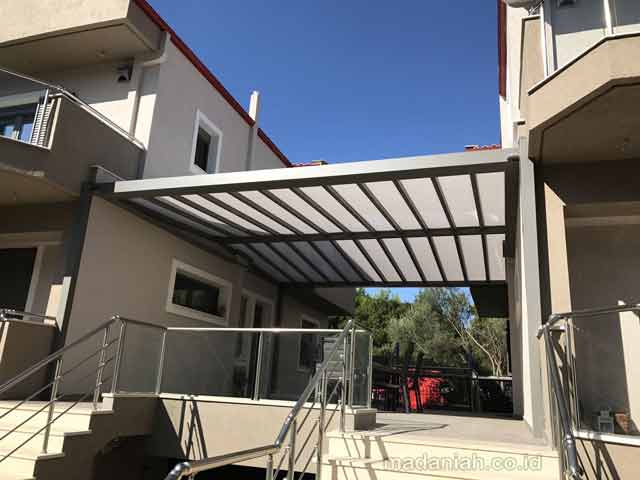 Kanopi baja ringan minimalis di Bantul – Kanopi baja ringan memiliki banyak desain model yang menarik banyak hati peminatnya di pasaran. Kanopi baja ringan ini memiliki berat yang ringan sehingga memudahkan dalam pemasangannya. Dengan bahan baja ringan membuatnya tahan api, karat, dan rayap sehingga dapat bertahan dalam kurun waktu yang cukup lama. Tidak hanya unggul dalam segi ketahanan, baja ringan juga unggul dalam masalah harga, harga kanopi ini relatif lebih murah daripada kanopi dengan bahan lainnya sehingga dapat digunakan oleh seluruh lapisan masyarakat.