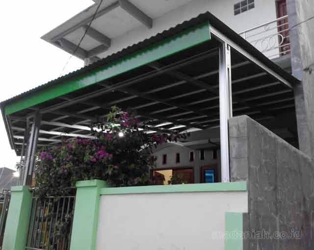 Kanopi baja ringan minimalis di Magelang – Kanopi baja ringan memiliki banyak desain model yang menarik banyak hati peminatnya di pasaran. Kanopi baja ringan ini memiliki berat yang ringan sehingga memudahkan dalam pemasangannya. Dengan bahan baja ringan membuatnya tahan api, karat, dan rayap sehingga dapat bertahan dalam kurun waktu yang cukup lama. Tidak hanya unggul dalam segi ketahanan, baja ringan juga unggul dalam masalah harga, harga kanopi ini relatif lebih murah daripada kanopi dengan bahan lainnya sehingga dapat digunakan oleh seluruh lapisan masyarakat.