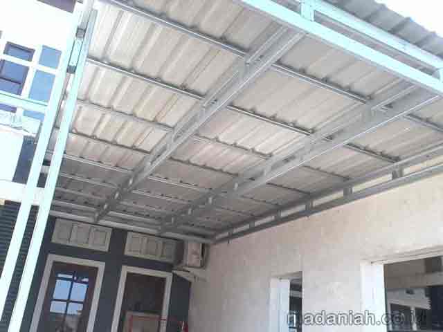 Kanopi rangka galvanis atap alderon – Jika anda ingin membangun sebuah kanopi untuk lahan kosong atau halaman rumah anda, maka mulailah untuk memikirkan desain yang cocok dengan gaya keseluruhan rumah kita serta memiliki harga yang sesuai dengan kantong kita. Kita dapat mencoba kanopi dengan rangka dari besi galvanis. Dari segi harga memang sedikit lebih mahal dari pada besi pada umumnya, tetapi dari segi kualitas besi galvanis tergolong paling murah. Besi galvanis memiliki keawetan yang cukup lama jika dibandingkan dengan besi biasa.