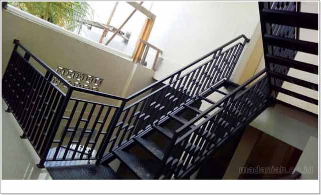 Bengkel las MADANIAH penyedia railing tangga dengan kualitas bahan terbaik dengan harga yang terjangkau. Kami menyediakan jasa pembuatan dan pemasangan kanopi rumah, atap baja ringan, pagar besi, pintu besi, pintu garasi, pintu gerbang, railing tangga, railing balkon, tangga besi, teralis jendela dengan berbagai model, baik minimalis, klasik maupun modern, dari berbagai macam bahan seperti besi tempa, besi stainless steel, besi nako dan masih banyak lagi. Warna cat, ukuran, model, dan karakter dapat di pesan sesuai selera dan keinginan pelanggan (make to order by appointment). Menyediakan produk aksesoris rumah, kantor, apartemen, atau fasilitas umum lainnya dengan bahan-bahan pilihan. Kami juga melayani service / perbaikan / perawatan.
