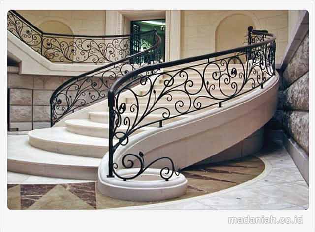 Bengkel las MADANIAH penyedia railing tangga lengkung dengan kualitas bahan terbaik dengan harga yang terjangkau. Kami menyediakan jasa pembuatan dan pemasangan kanopi rumah, atap baja ringan, pagar besi, pintu besi, pintu garasi, pintu gerbang, railing tangga, railing balkon, tangga besi, teralis jendela dengan berbagai model, baik minimalis, klasik maupun modern, dari berbagai macam bahan seperti besi tempa, besi stainless steel, besi nako dan masih banyak lagi. Warna cat, ukuran, model, dan karakter dapat di pesan sesuai selera dan keinginan pelanggan (make to order by appointment). Menyediakan produk aksesoris rumah, kantor, apartemen, atau fasilitas umum lainnya dengan bahan-bahan pilihan. Kami juga melayani service / perbaikan / perawatan.